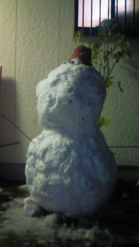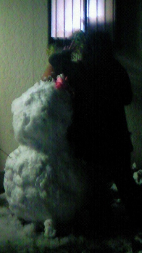 そのあとせっかく積もっているので雪だるまを作ってみました。携帯の写メではうまく撮れませんでした。でも、せっかく撮ったので、一応載せてみる。大体こんな感じ。